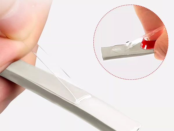 KJ-硅胶多孔自粘密封条采用优质二氧化硅为原料挤出成型,具有良好的变形回弹性、抗击打性、热稳定性、耐冷耐热耐老化、材质柔软自由裁剪,亚克力无痕背胶,粘贴牢固,密封效果好,产品使用寿命长。